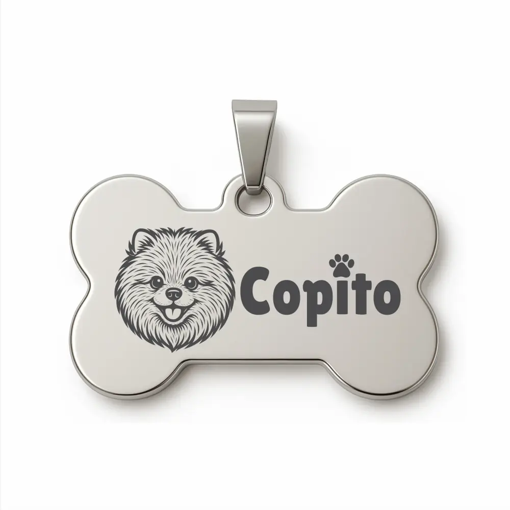 La Placas identificación acero mascotas es práctica, resistente y elegante. Está hecha en acero inoxidable duradero para que la use tu mascota sin preocuparte por el desgaste. Además, puedes grabar su nombre, números de contacto, y así tener siempre la identificación de tu perro o gato. La Placa Medalla Identificación Mascotas es esencial para su seguridad.