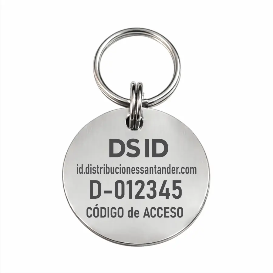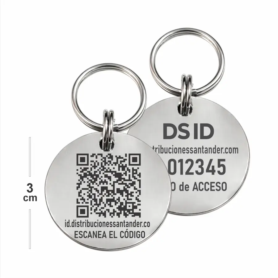 La placa inteligente DS ID es la forma más segura y moderna de identificar a tu mascota. Tiene un código QR grabado en láser sobre acero inoxidable, y al escanearlo con cualquier celular abre el perfil DS ID de tu mascota, con la información que tú registres y autorices: contactos, WhatsApp, datos médicos, vacunas, ubicación y más.